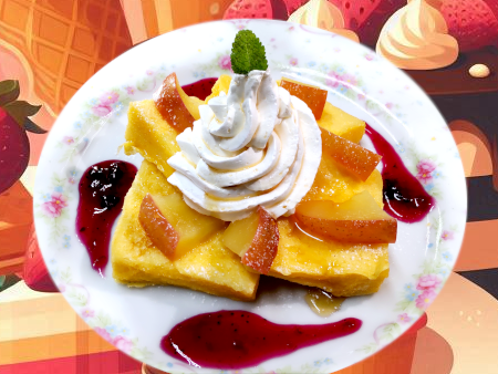 フレンチトースト Menu 2025.05.17 フルーツとクリーム添え フレンチトースト フルーツとクリーム添え 625円 ・Setドリンク +270円 コーヒー、紅茶、メロンソーダ・アイスクリーム +150円 ※税込みの金額となっております。 ※デザートのフルーツは日によって変わる場合がございます。あらかじめご了承くださいませ。