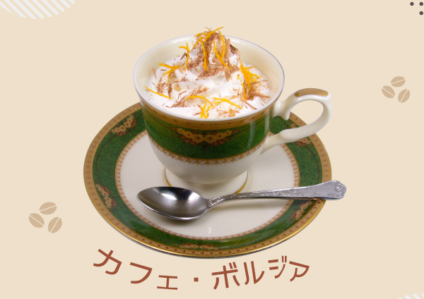 生クリームに削りチョコレートとオレンジピールがトッピングされています。